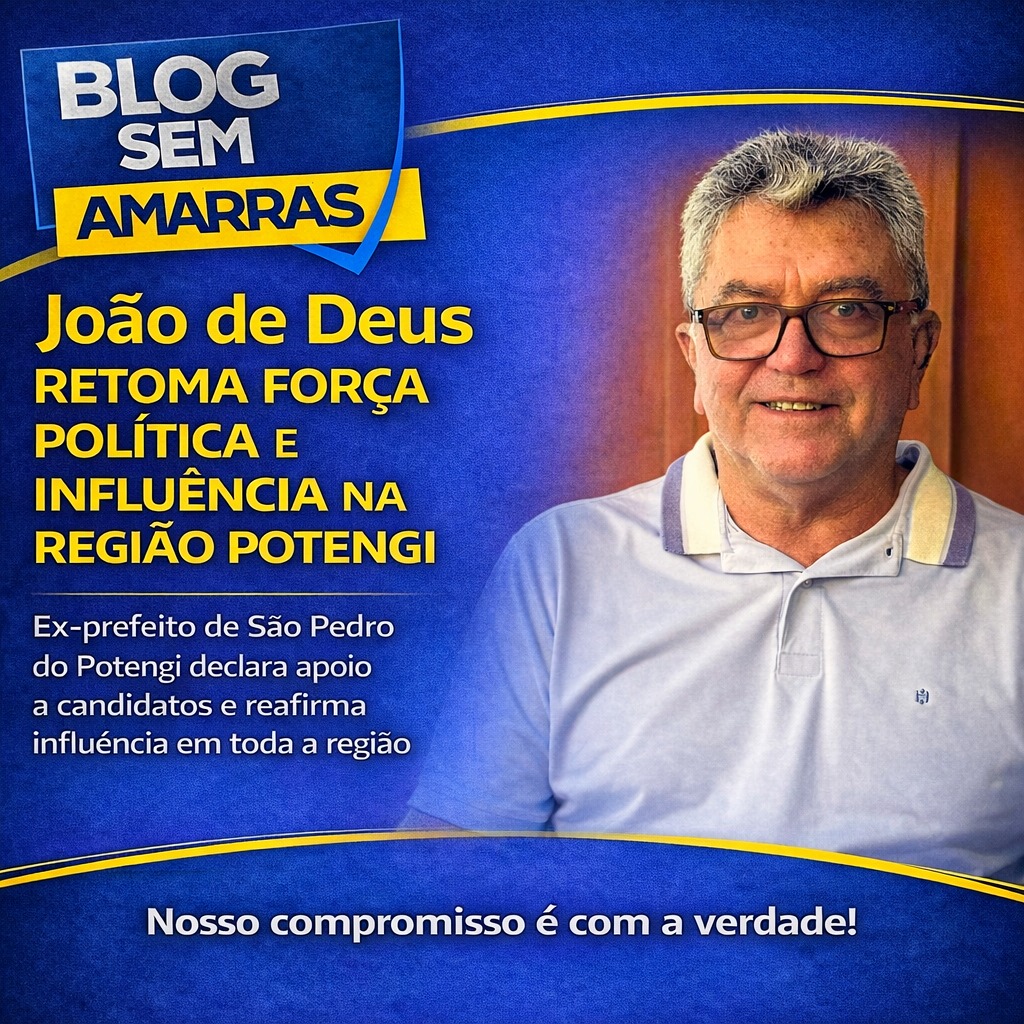 O ex-prefeito de São Pedro do Potengi, João de Deus, que comandou o município por dois mandatos, segue exercendo papel de destaque nas articulações políticas da região. Com trajetória marcada pela experiência administrativa e forte presença nos bastidores, ele continua sendo uma das principais lideranças políticas locais.
